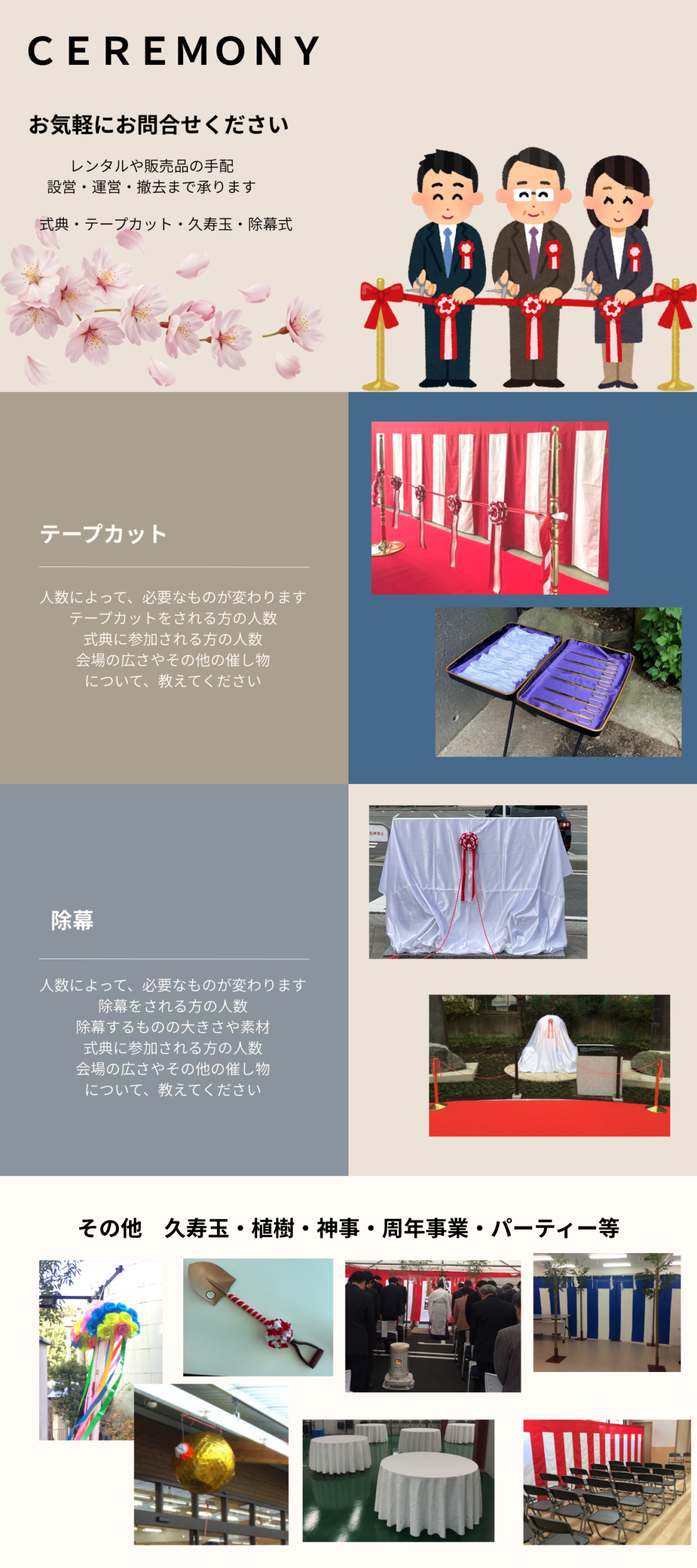 レンタル品目のご相談はもちろん、設営・施工のご相談など、お気軽にお申し付けください。